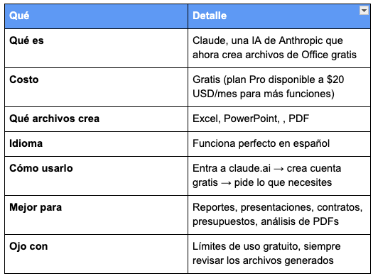 Hasta ahora, crear archivos de Office dentro de Claude era exclusivo del plan Pro ($20 USD/mes). Desde el 12 de febrero de 2026, eso cambió: los usuarios gratuitos ahora tienen acceso.